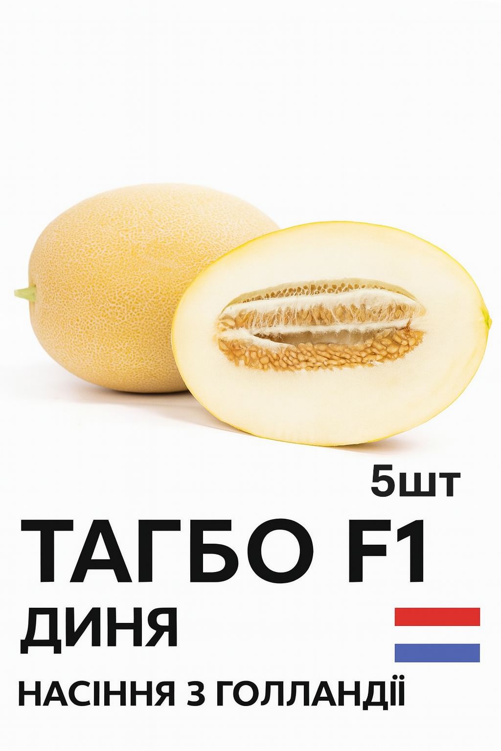 Диня Тагбо F1 — ранній гібрид типу Ананас від компанії Rijk Zwaan. Ця диня порадує вас не лише своїм яскраво-жовто-оранжевим забарвленням шкірки, але й надзвичайно смачним та цукристим кремовим м’якушем, що робить її популярною серед споживачів.